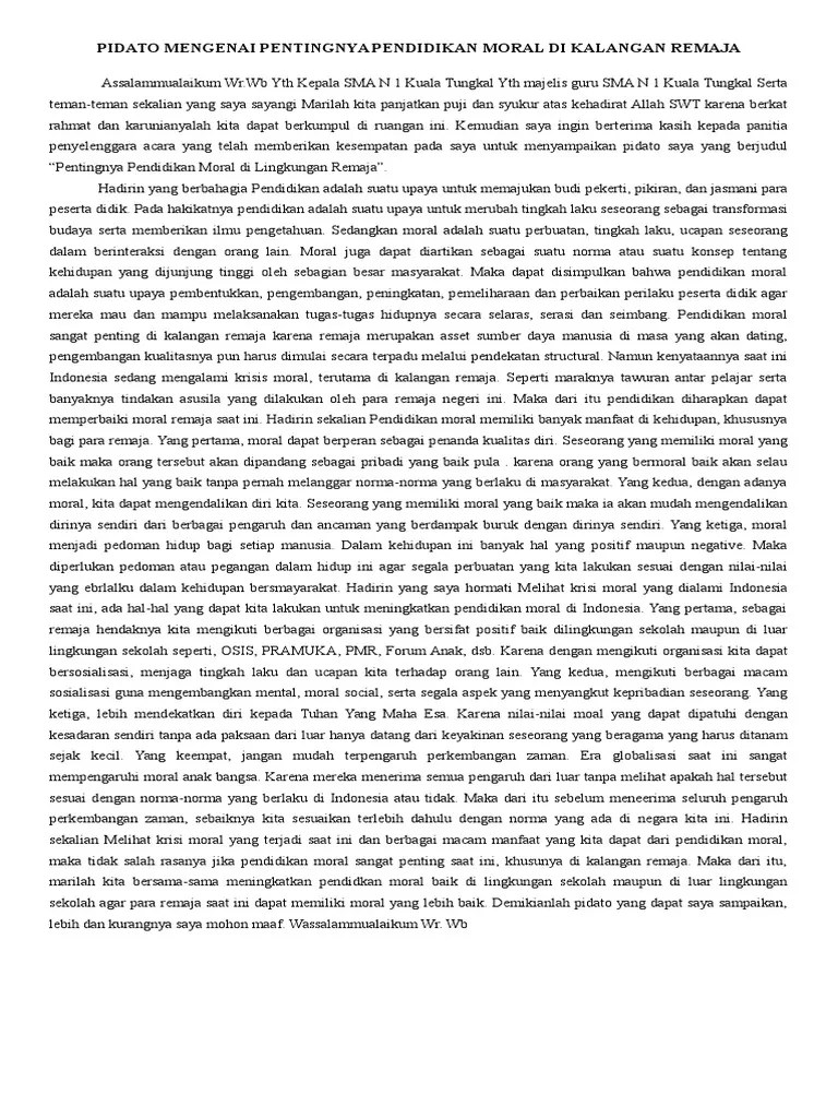 Materi vokal yang akan saya berikan bertema pentingnya pendidikan moral. Ada berbagai tema yang bisa disampaikan dalam berpidato. Saya ucapkan banyak terima kasih telah memberikan kesempatan kepada saya untuk menyampaikan pidato bertema "pentingnya pendidikan untuk masa . Contoh pidato pendidikan karakter remaja blog pendidikan pdf pentingnya penerapan pendidikan. Belakangan ini kita sering melihat perilaku buruk dari semua elemen .